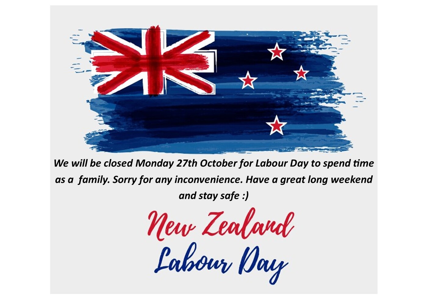 We are closed Monday for Wellington Anniversay Day, there will be no orders shipped this day sorry so they will go out Tuesday instead