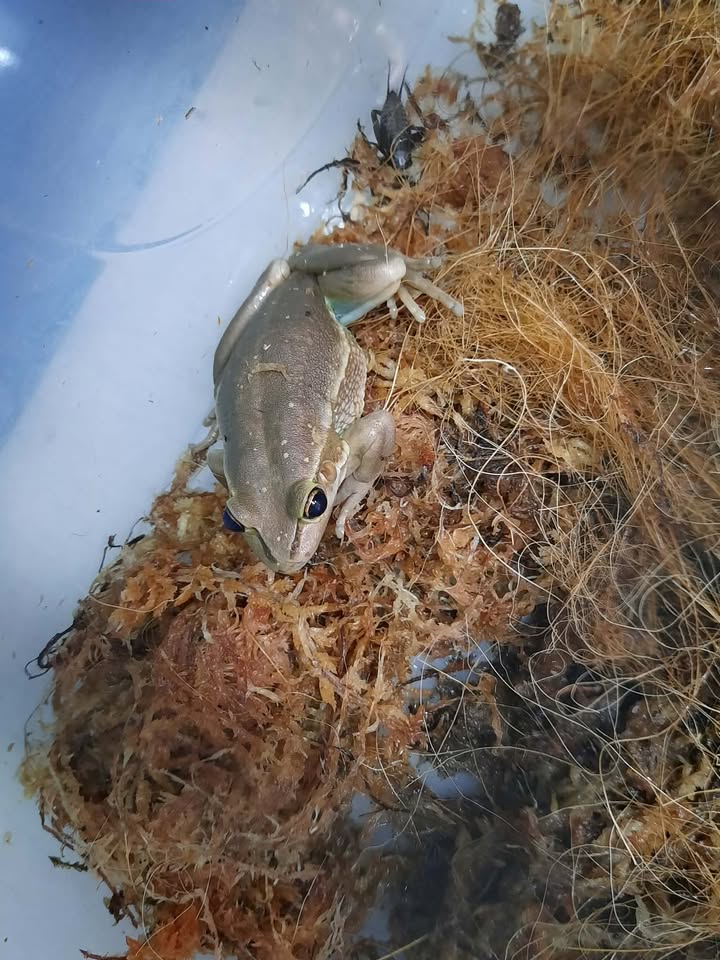 Frogs are shipped in a plastic container with sphagnum moss and then inside a polystyrene box. Please note that these are shipped at your risk. We do take every possible care to ensure they arrive safely to you.