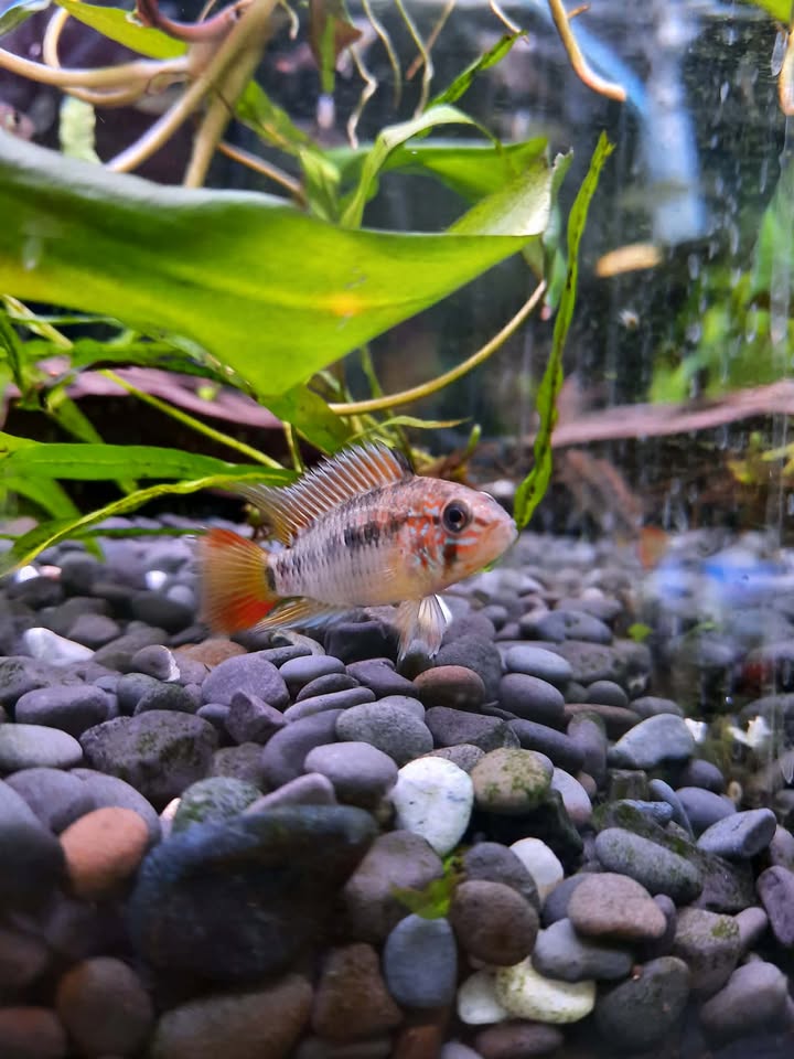 viejita Apisto are a gorgeous colourful freshwater fish in the cichlid family. These are a dwarf cichlid and generally a peaceful fish so good for a community tank.