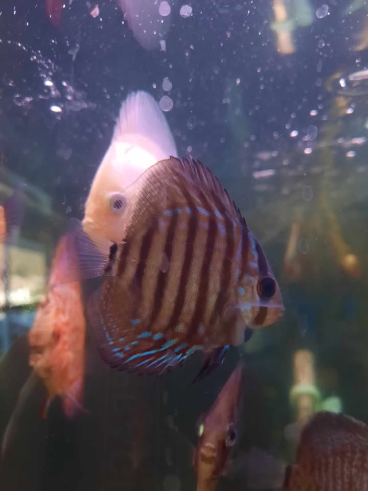 Discus Prefer a higher temp than other aquarium fish, Discus prefer 28-30 degrees. Discus also can grow to be 15-20 cm in diameter.