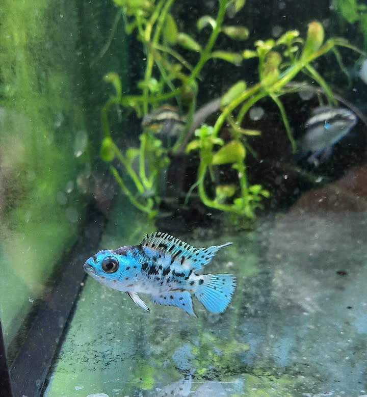 Electric blue Jack Dempsey are a gorgeous colourful freshwater fish in the cichlid family.