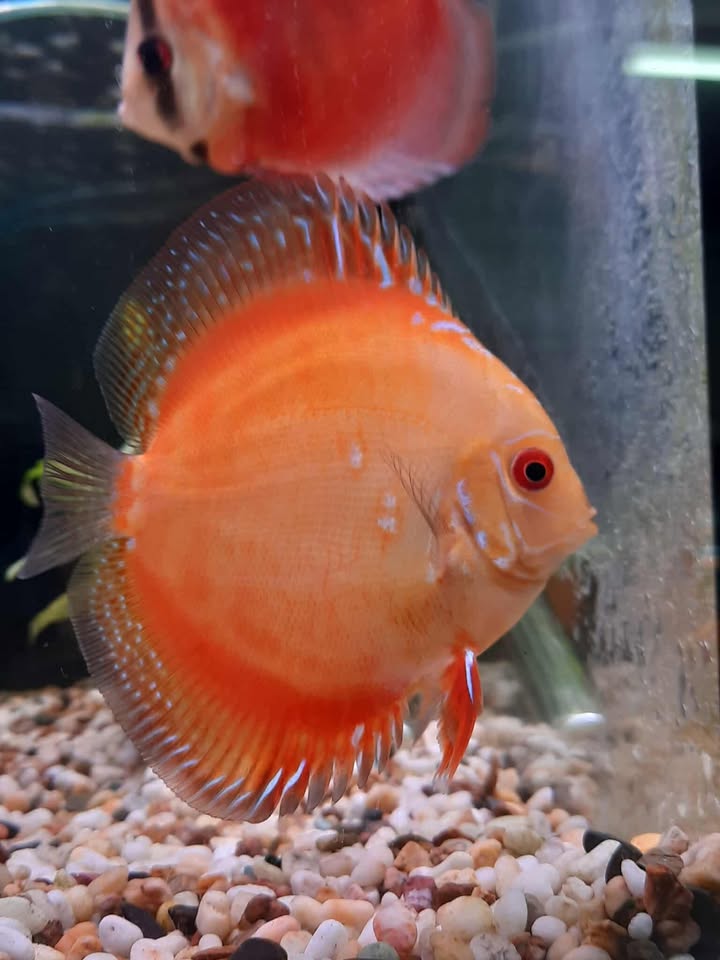We feed all of our fish our Maximum Pet Supplies branded fish food which consists of a mixture of our Colour Enhancing Flakes, Discus Bits/Slow Sinking Granules, Freeze Dried Brine Shrimp, Live White Worms and Daphnia.