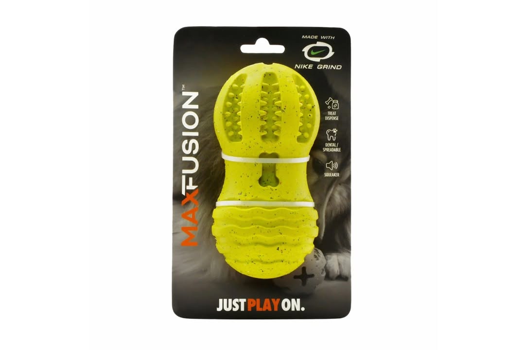 Max Fusion is changing the game from the ground up by combining Nike Grind rubber from unused footwear soles with pure, natural rubber. The results are new, durable, engaging toys that matches your dog's passion for play.