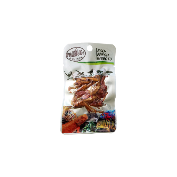 All ProBugs Eco Fresh products are organic, farm raised whole insects processed in clean FDA certified facilities. Eco-Fresh Pro Bugs are free of bacteria and parasites, which are a problem with live feeders. Pro Bugs are easy to transport and store. No need to keep live insects in your home or worry about travelling with live feeders.