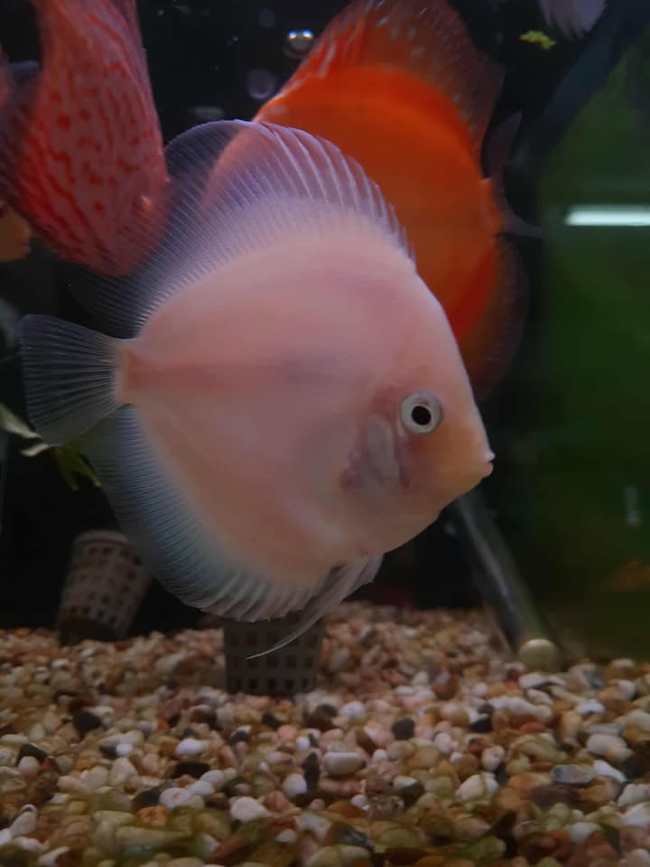 We feed all of our fish our Maximum Pet Supplies branded fish food which consists of a mixture of our Colour Enhancing Flakes, Discus Bits/Slow Sinking Granules, Freeze Dried Brine Shrimp, Live White Worms and Daphnia.