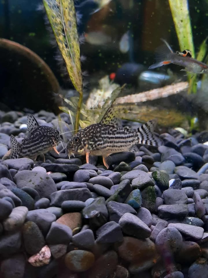 Sterbai Corys are a great community fish and very easy to care for. These are a bottom feeder which makes them perfect for eating food waste on the bottom of the tank. They do like to be in shoals of 6 or more.