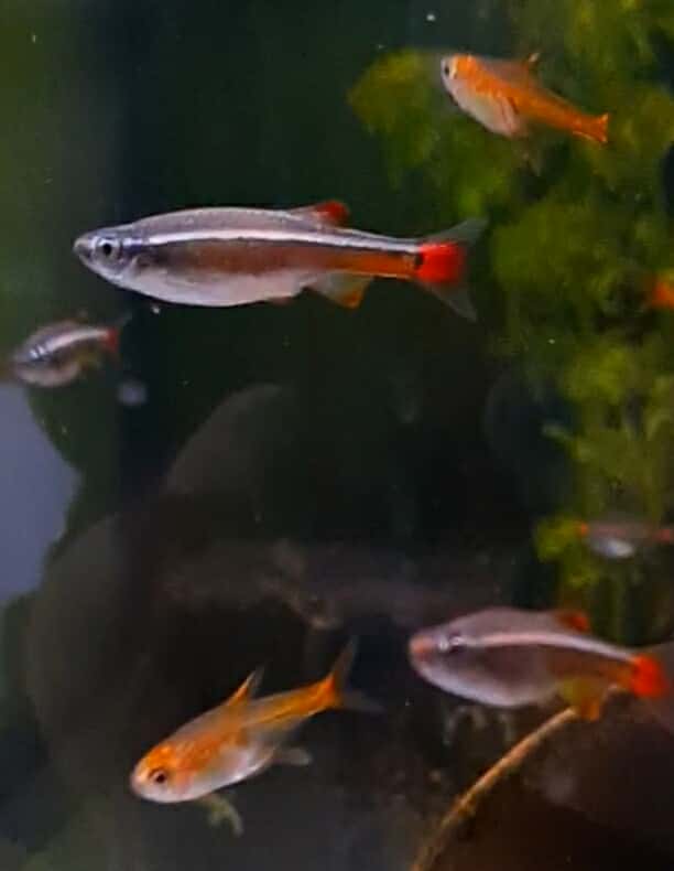 White Cloud Minnow are a great community fish and very easy to care for. They can be kept as tropical fish, in cold water tanks and in outdoor ponds. They get to around 4cm in size. They do like to be in shoals of 6 or more.