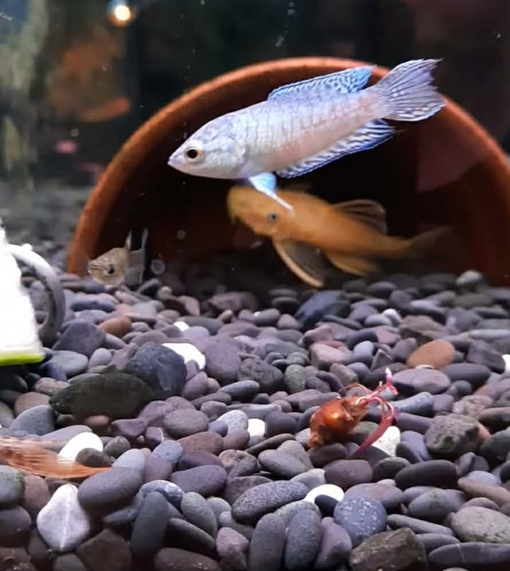 Blue Paradise Fish also known as Paradise Gourami. They can be kept in either Coldwater or Tropical. aquariums. They are kept in tropical at the moment.